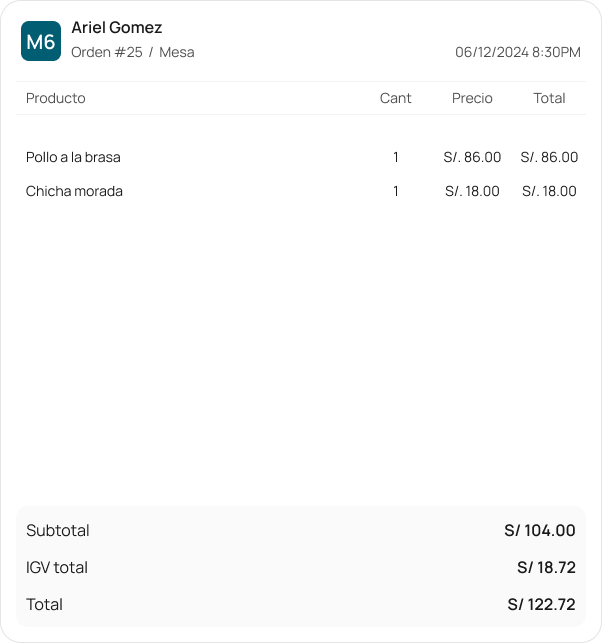 Gestiona pedidos en salón, reservas y para llevar desde un mismo punto. Con Quipu Restaurante controlas mesas, comandas y cocina, facturas electrónicamente en segundos y sincronizas inventario por recetas e insumos en tiempo real.